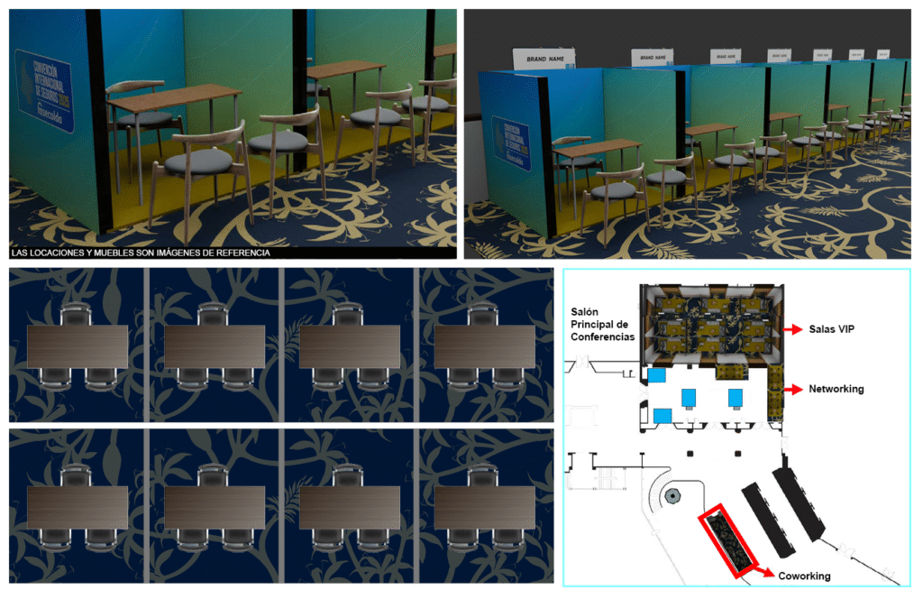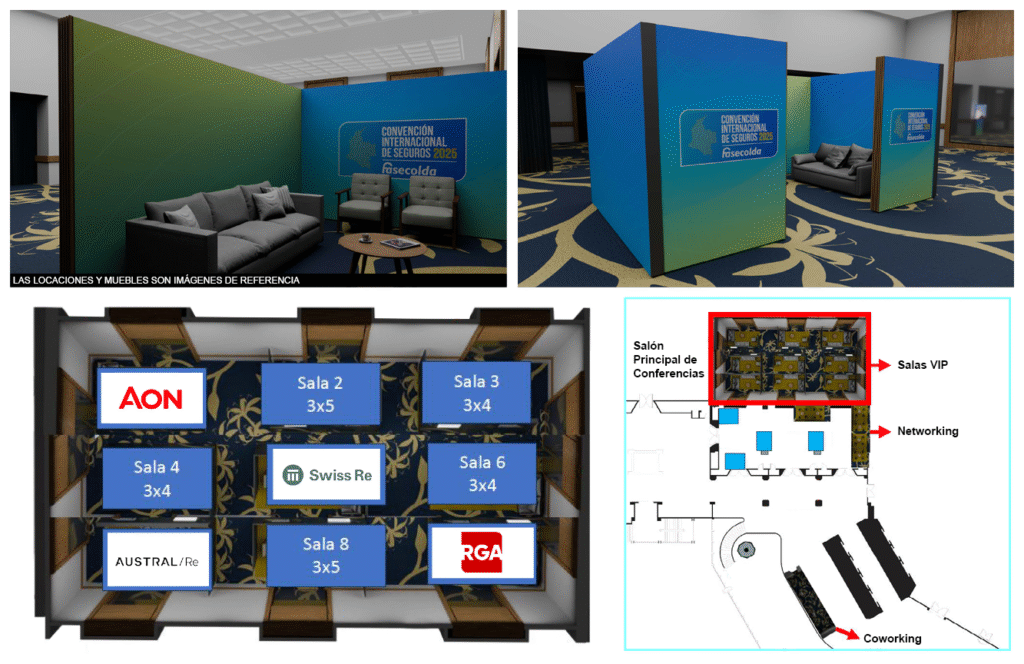 Ubicación del logo del patrocinador y su imagen en una salas VIP que los asistentes podrán reservar para desarrollar negocios comerciales o reuniones privadas.