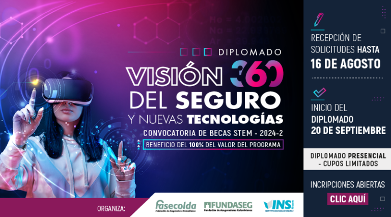 Fasecolda y Fundaseg invitan a los estudiantes universitarios a que se inscriban al diplomado ‘Visión 360 del Seguro y Nuevas Tecnologías’, que dictará el Instituto Nacional de Seguros – INS.