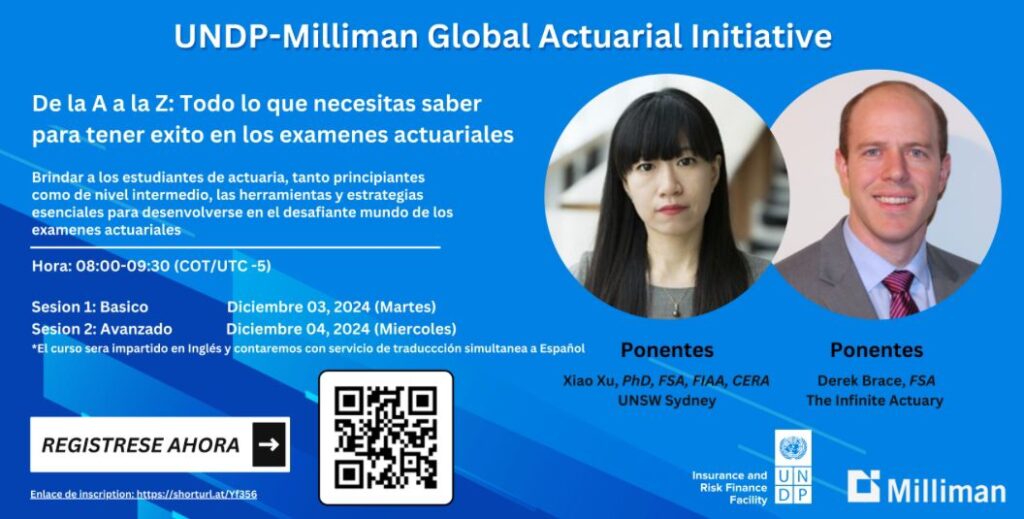 En el marco de la alianza GAIN PNUD-Milliman, llega una serie de seminarios web diseñados para estudiantes de actuaría en cualquier etapa de su proceso de examen. Estas sesiones ofrecen estrategias clave y orientación experta para enfrentar con éxito los desafíos de los exámenes actuariales.
